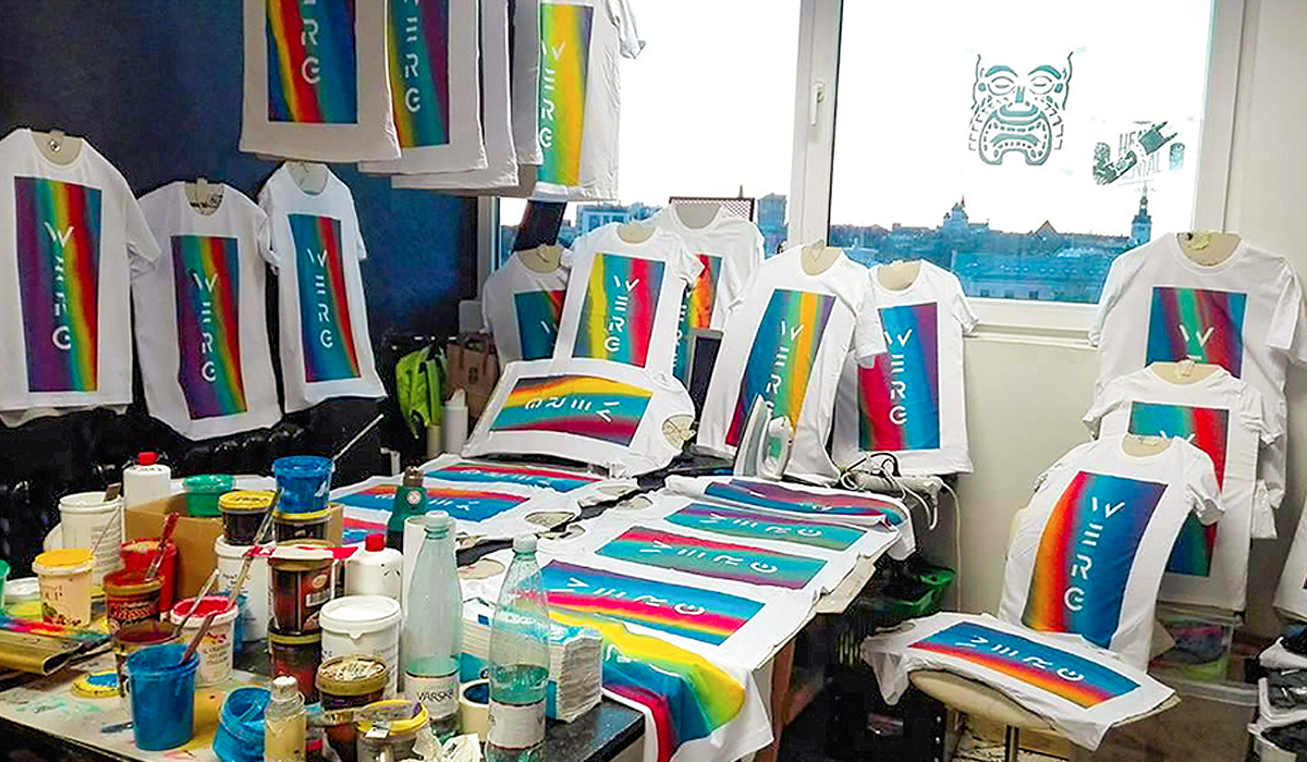 Visuaalsed eksperimendid võtsid füüsilise kuju ka fännisärkidel. Särkide tootmisel ühendasime jõud spetsialistidega Heavy Mental stuudiost kelle abiga valmisid särgid siiditrükis ja käsitööna. Iga särgi eksemplar oli tulemusena ainulaadne — sama värvimäng ei kordunud ühelgi särgil.
