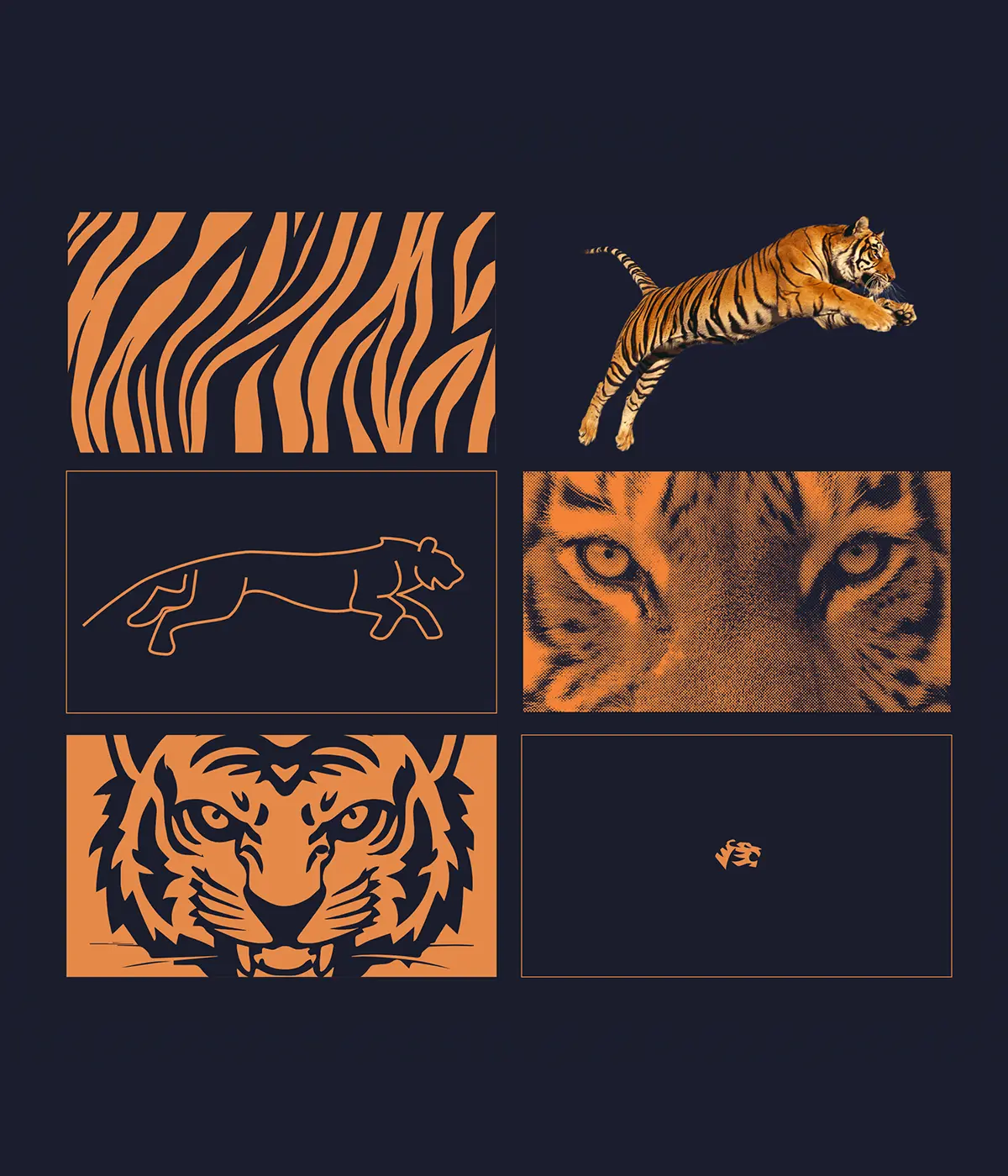 TIGLED’i visuaalse identiteedi loovkontseptsioon toetub tiigri iseloomule. Sarnaselt tiigri loomusele soovib Tigled domineerida spordiürituste džunglis ning kuvada end vägeva ja tugeva ettevõttena.